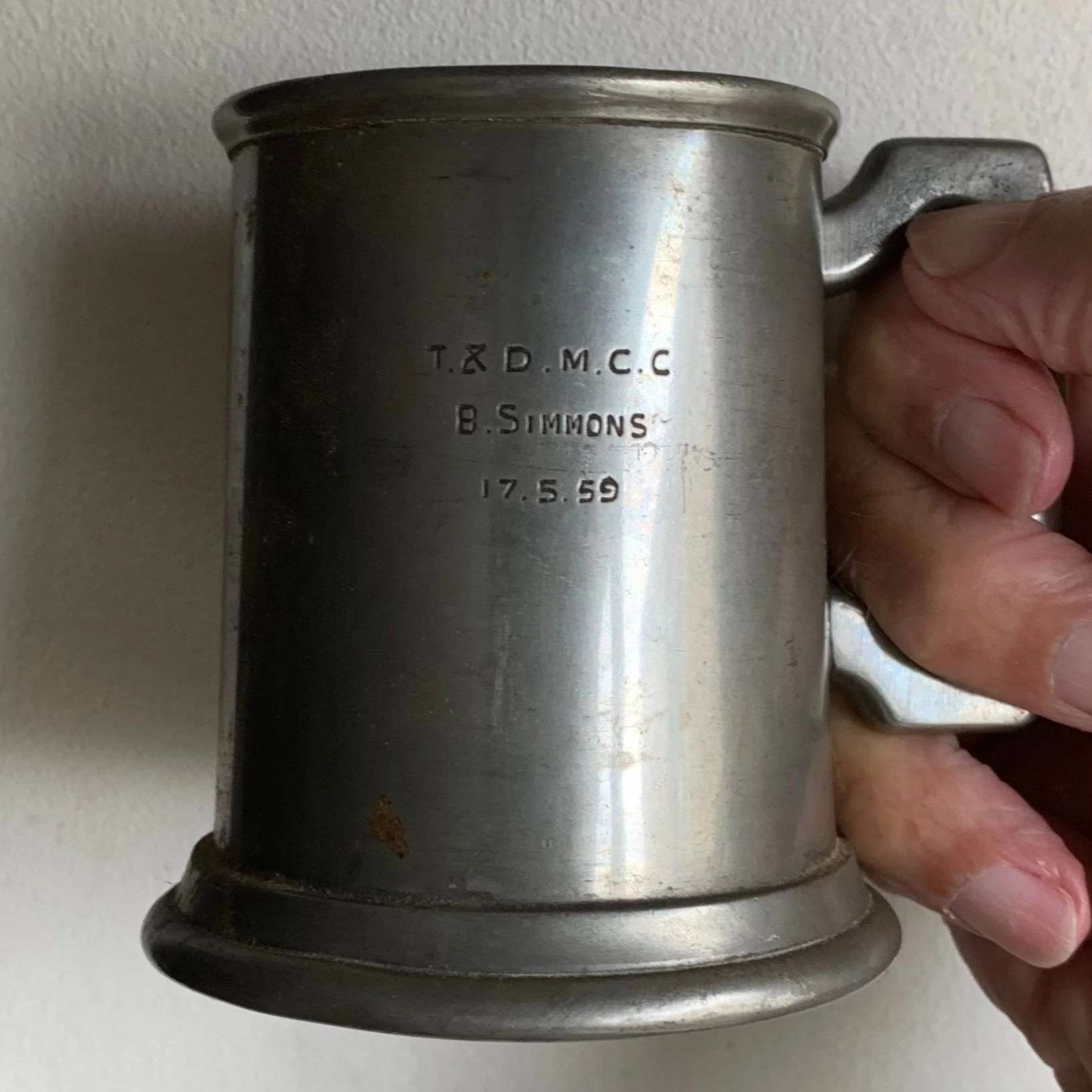 I mentioned to a couple of visitors waiting beside me, that locals used to have their own pewter tankards hanging behind the bar, which reminded me that I had one at home somewhere, that I won at a motorcycle trial in 1959 for the best rider under 18.